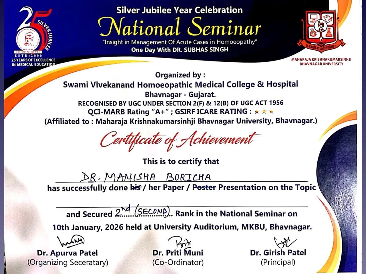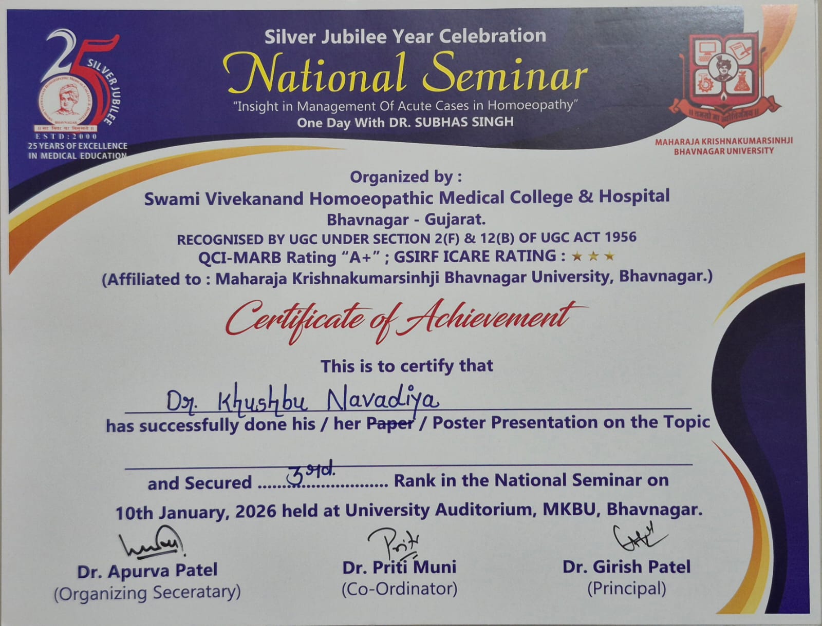 - Award to University Toppers by Council of Homoeopathic System of Medicine-2024