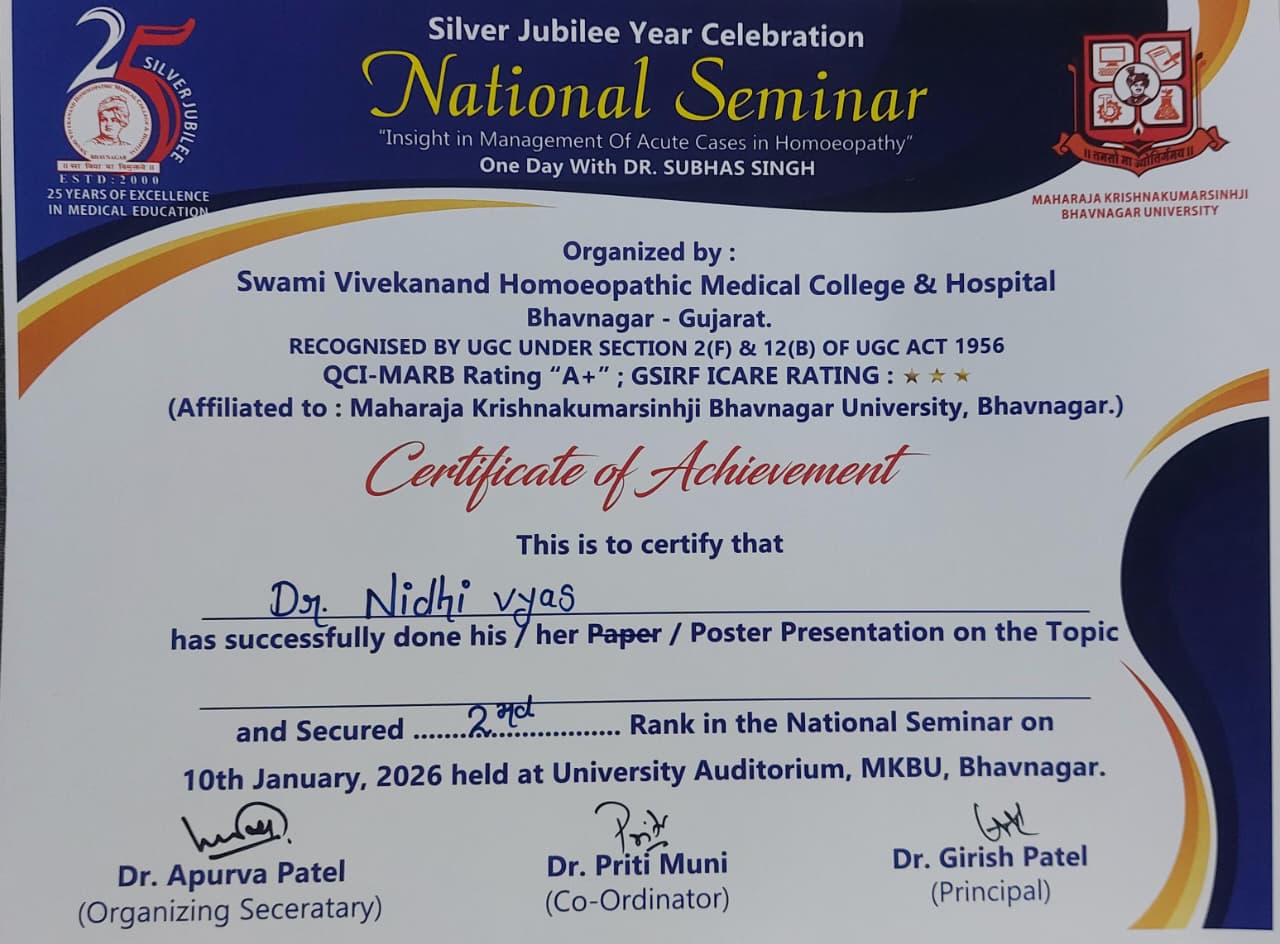 - Award to University Toppers by Council of Homoeopathic System of Medicine-2024
